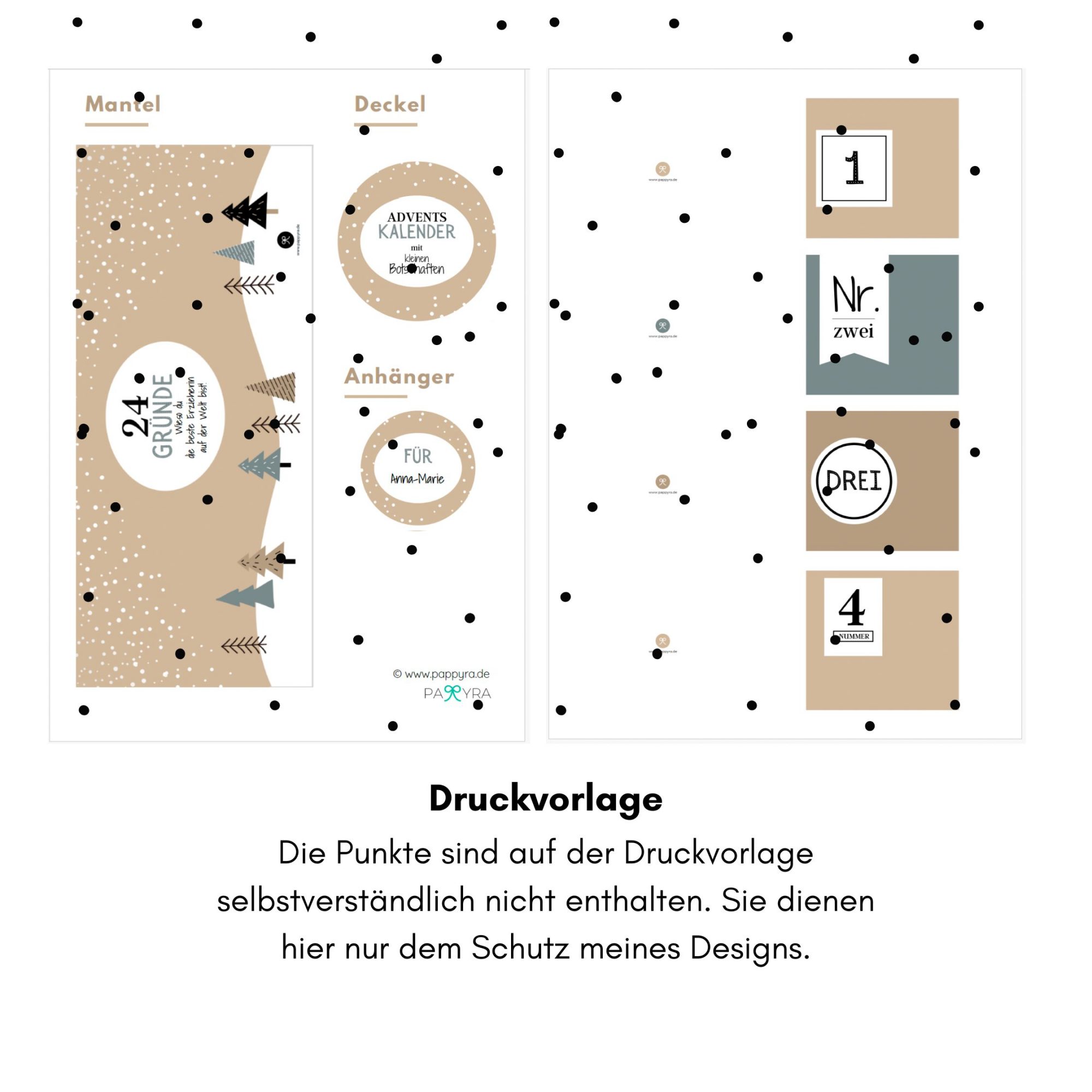 Der Download ist sofort verfügbar. Du druckst ihn direkt aus, bastelst ein paar Minuten – fertig ist dein persönlicher Last-Minute-Adventskalender, der wie handgemacht aussieht.