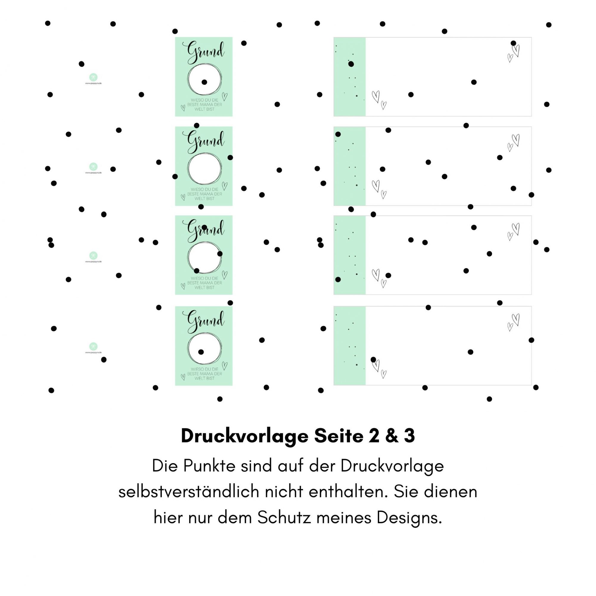 Das Beste Mama Geschenk druckst du auf weißem Papier aus. Da die Gründe-Zettel beidseitig bedruckt werden, empfehle ich dir ein etwas stärkeres Papier als 80g (z.B. 120g), damit die Tinte nicht durchscheint.