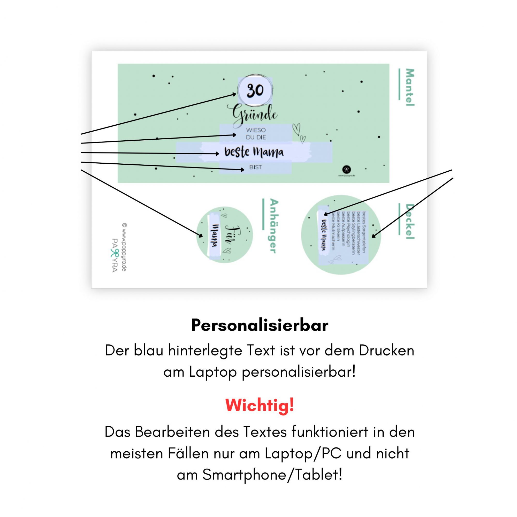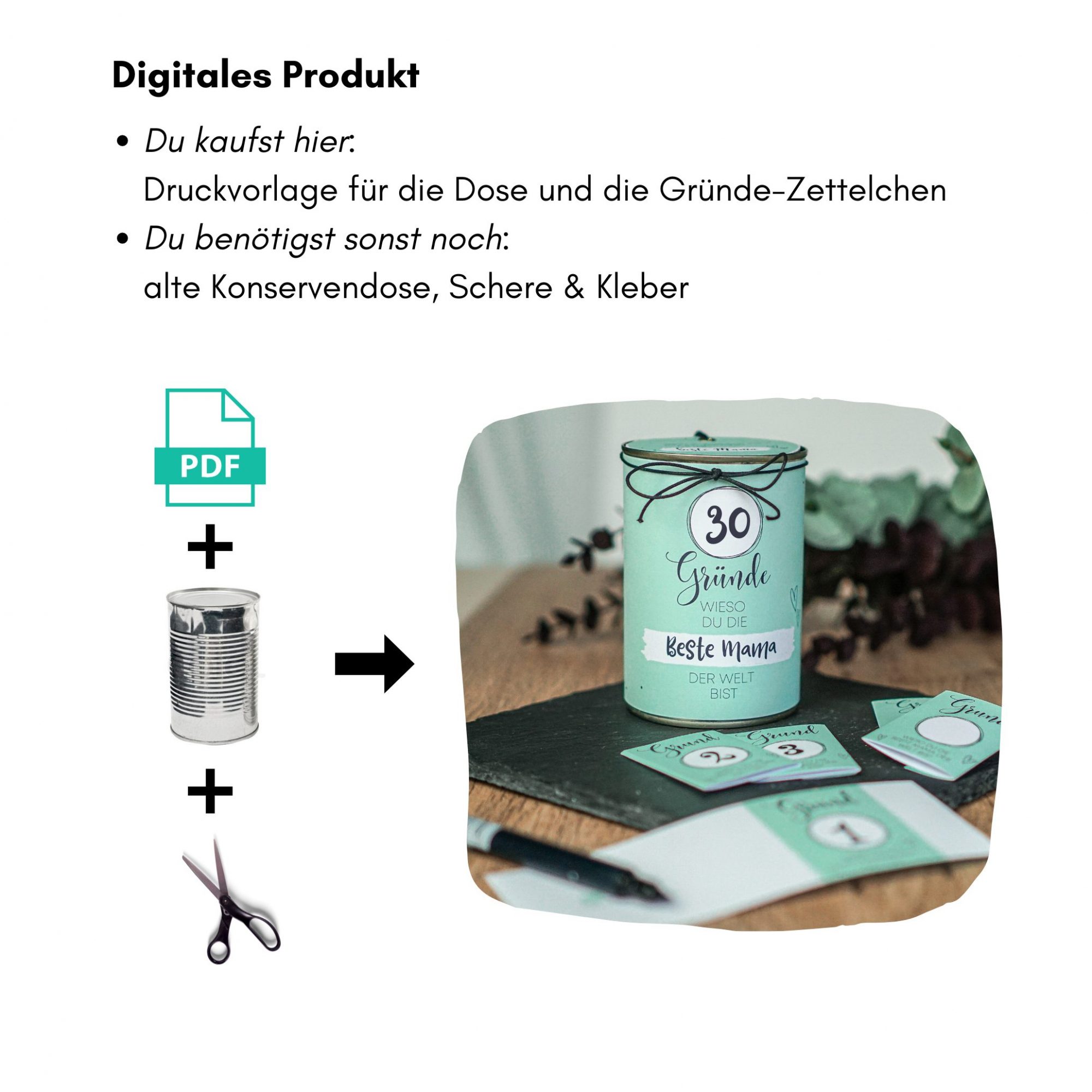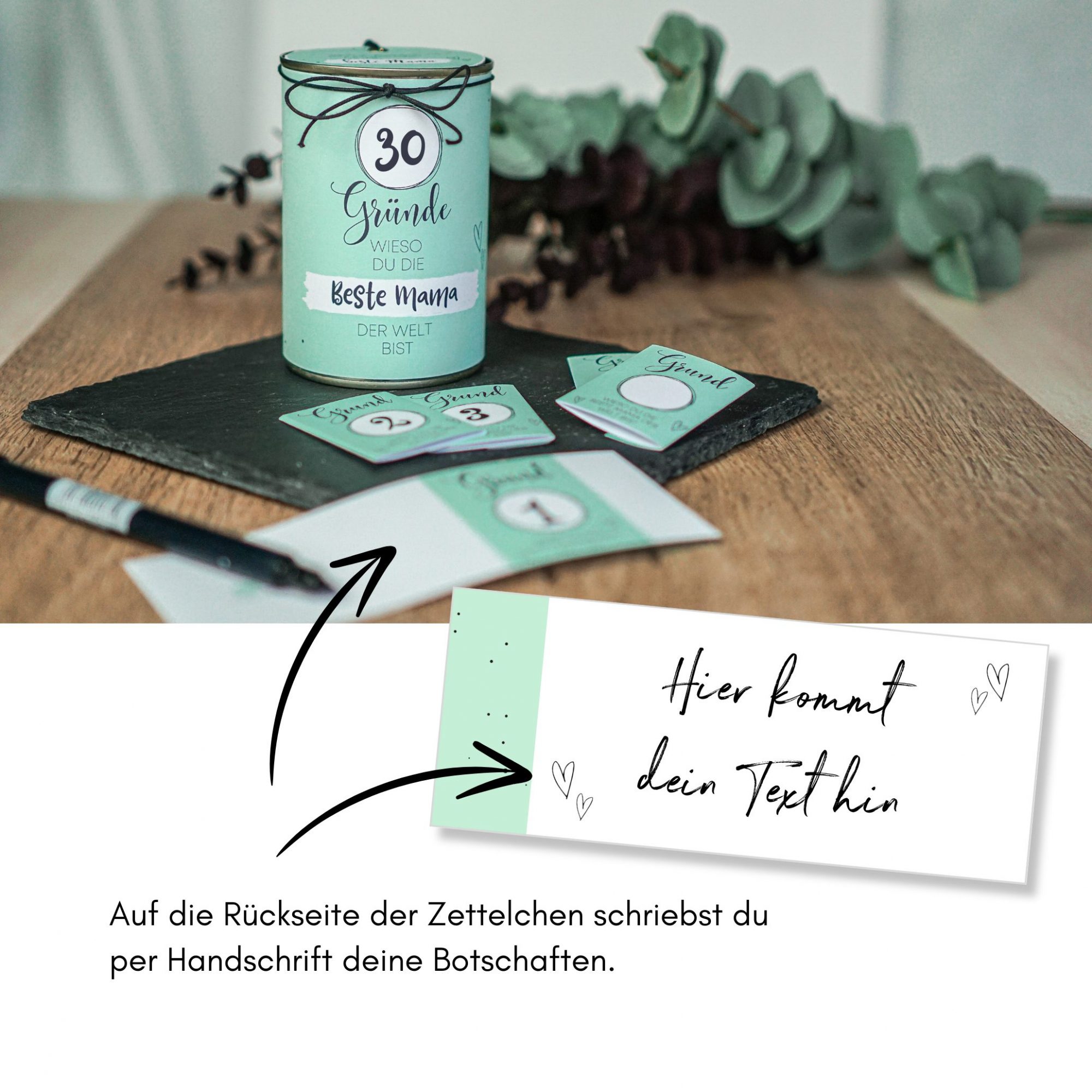 Digitale Druckvorlage für ein Beste Mama Geschenk: Komplimente-Dose mit kleinen Botschaften zum Ausfüllen, wieso du die beste Mama der Welt hast.