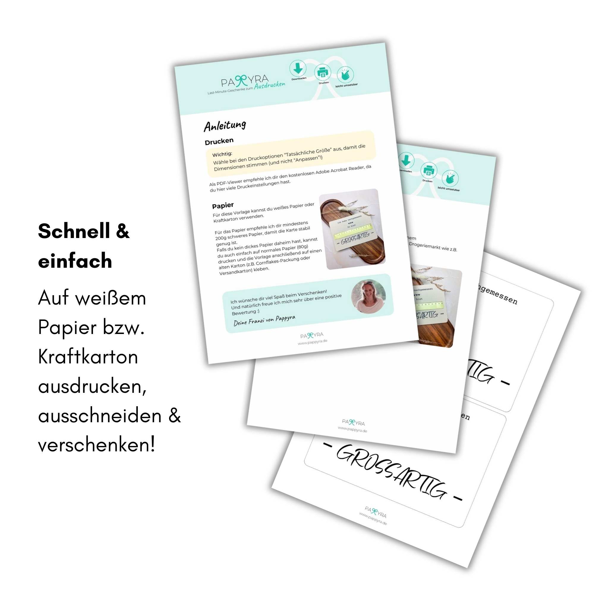 Ich weiß selbst nur zu gut, wie es ist, Sonntagabend noch fix ein Geschenk zu brauchen – und trotzdem etwas Besonderes überreichen zu wollen. Genau aus dieser Situation heraus entstand Pappyra: Druckvorlagen für die unterschiedlichsten Geschenkideen, die schnell & einfach umgesetzt sind.
