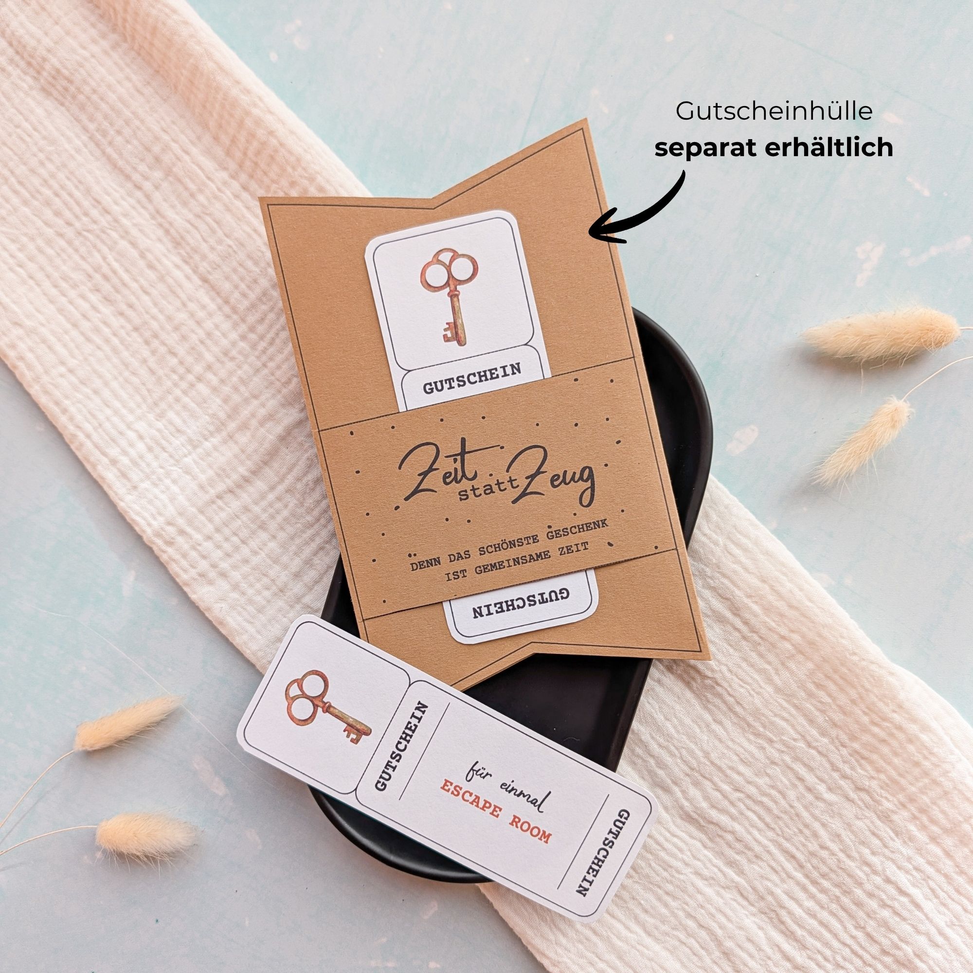 Mit einer meinen liebevoll gestalteten Karten & Hüllen wird dein Escape Room Gutschein zum echten Hingucker. Die Designs sind genau abgestimmt und machen dein Geschenk schon vor dem Spielstart besonders.