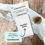 Tuchmasken oder flache Sachets eignen sich perfekt, da sie leicht in die Klarsichttüte passen.