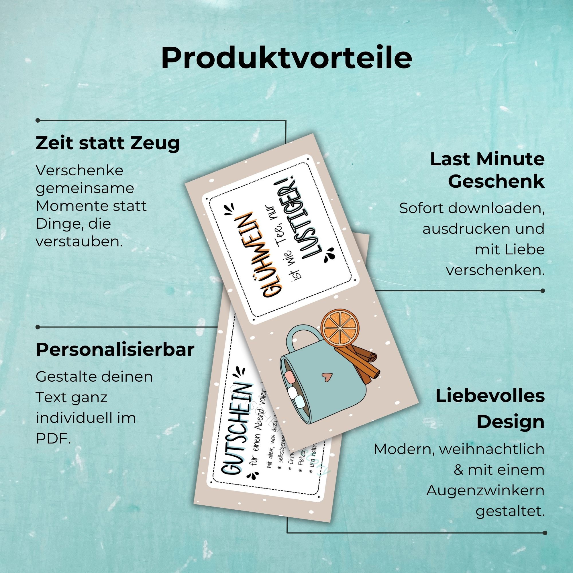 Der Glühwein-Gutschein steht für gemeinsame Zeit, Lachen und echte Verbindung – statt Konsum und Stress. Und das Beste: Er sieht professionell aus, ist aber in wenigen Minuten fertig.