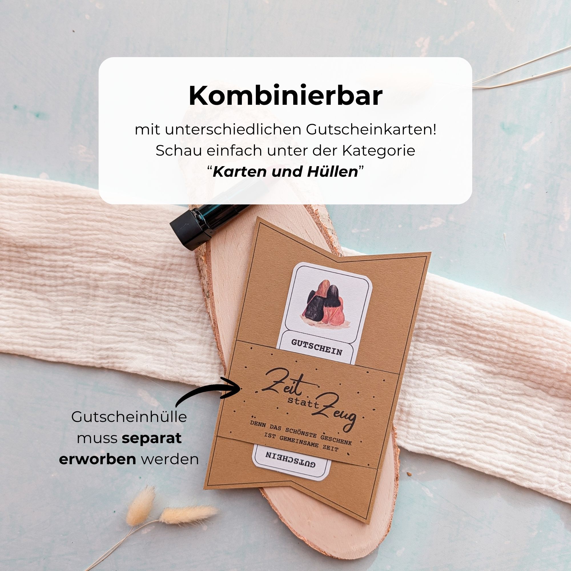 Du kannst die Karten & Hüllen sogar mit weiteren Gutscheinen aus meinem Sortiment zu liebevollen Sets zusammenstellen. So wird aus einer einfachen Vorlage ein liebevoll gestaltetes Präsent, das in jeder Hinsicht rundum stimmig wirkt.