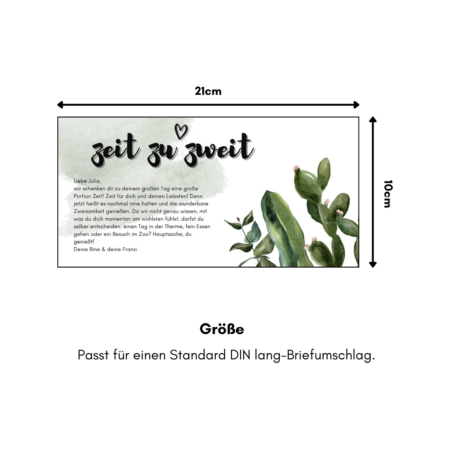 21 x 10 cm (passt für DIN lang Briefumschlag)