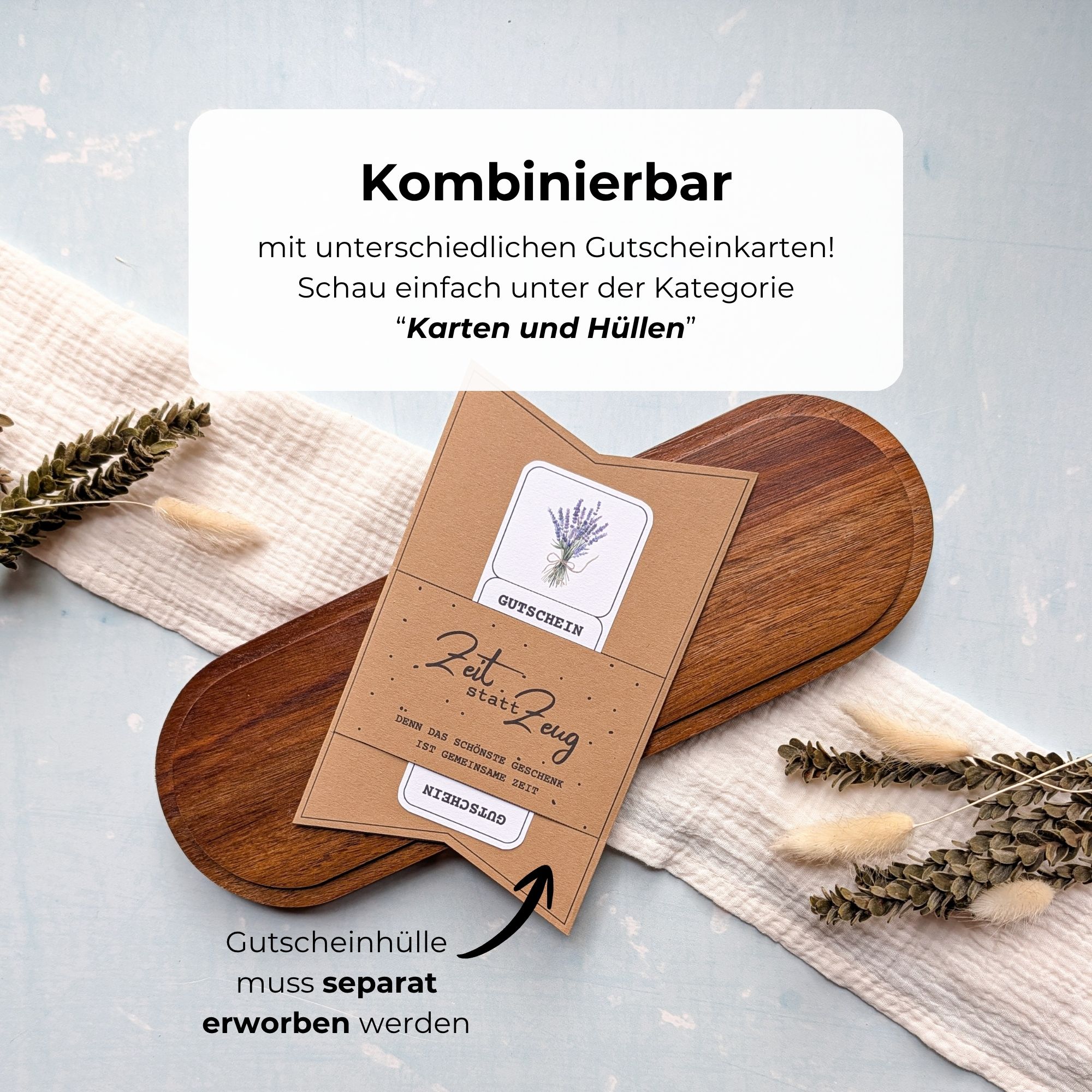 Ergänze die Kräuterwanderung Gutschein Vorlage mit den passenden Karten & Hüllen aus meinem Shop und gestalte daraus dein individuelles Geschenk. Für jeden Anlass findest du das richtige Motiv – ob Geburtstag, Dankeschön oder einfach so.