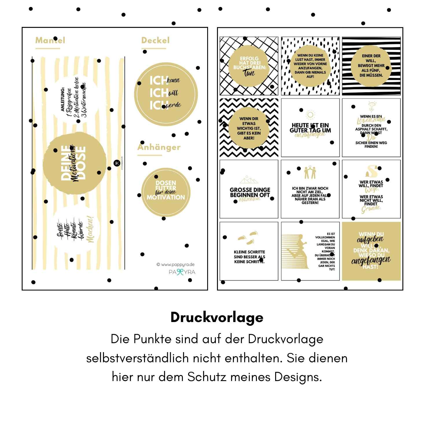 Mit dieser digitalen Vorlage verwandelst du in wenigen Minuten eine simple, leere Konservendose in ein echtes "Kraftpaket", gefüllt mit 21 inspirierenden Sprüchen und Zitaten.