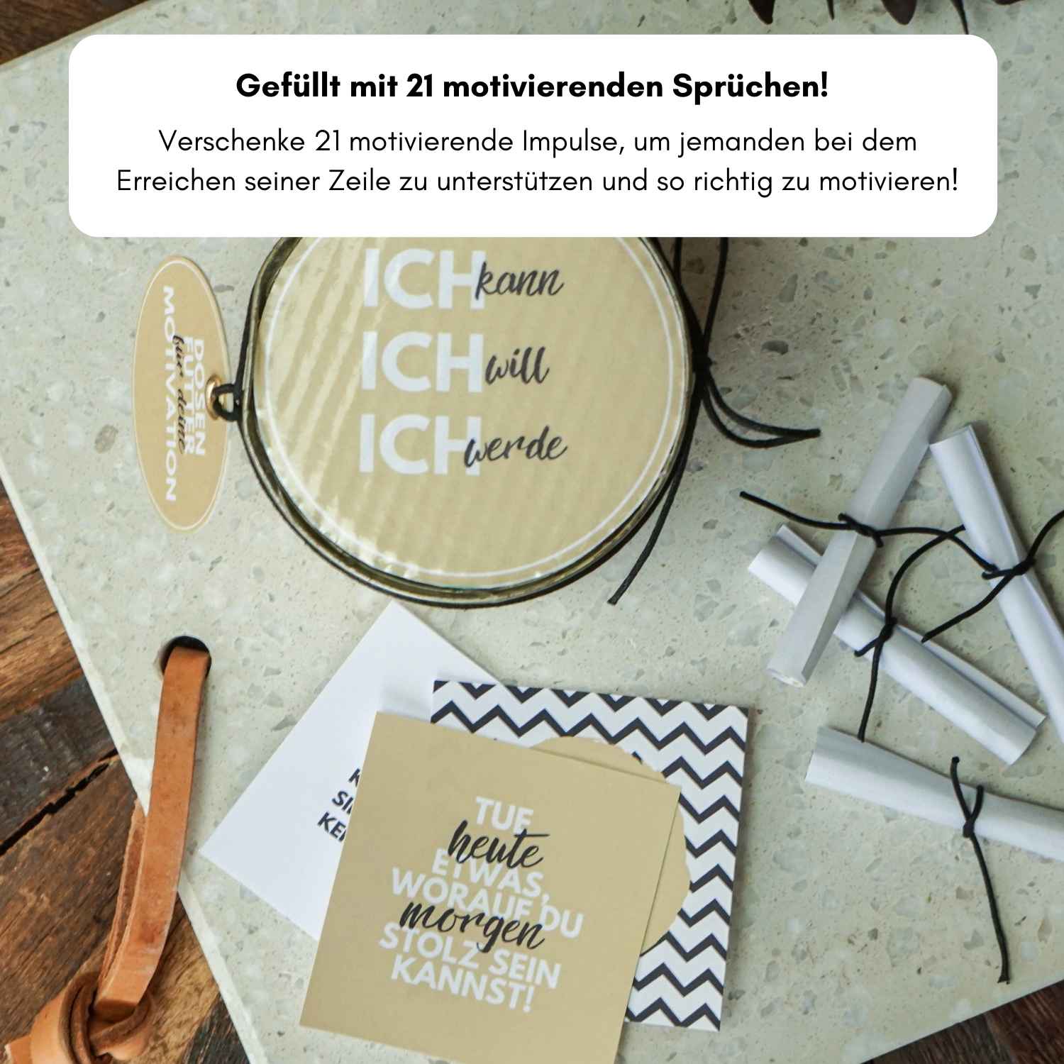 Es ist kein Zufall, dass meine Motivationsdose genau 21 Lose enthält. Die Psychologie sagt: Wir brauchen genau 21 Tage, um eine neue Gewohnheit in unserem Gehirn zu verankern. Mein Motivation Geschenk begleitet den oder die Beschenkte*n durch diese kritische erste Phase. Jeden Tag ein Los, jeden Tag ein neuer Impuls – so wird das Durchhalten zum Kinderspiel.
