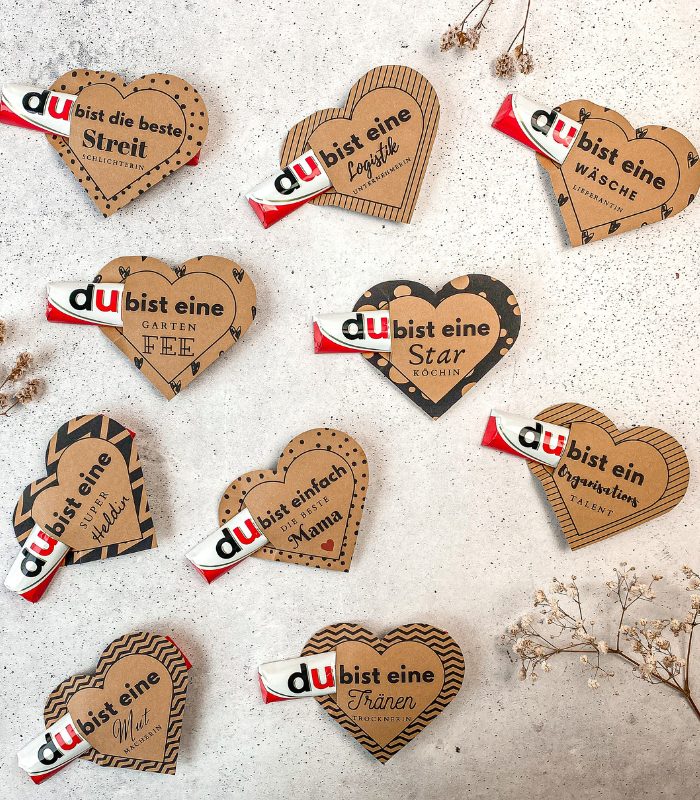 Ob ein kleines Mitbringsel im Einwegglas, ein hübsches Etikett für deine Lieblingsschokolade oder eine Karte mit Herz – du brauchst nur einen Drucker, ein paar Minuten Zeit und ein bisschen Lust auf Kreativität.