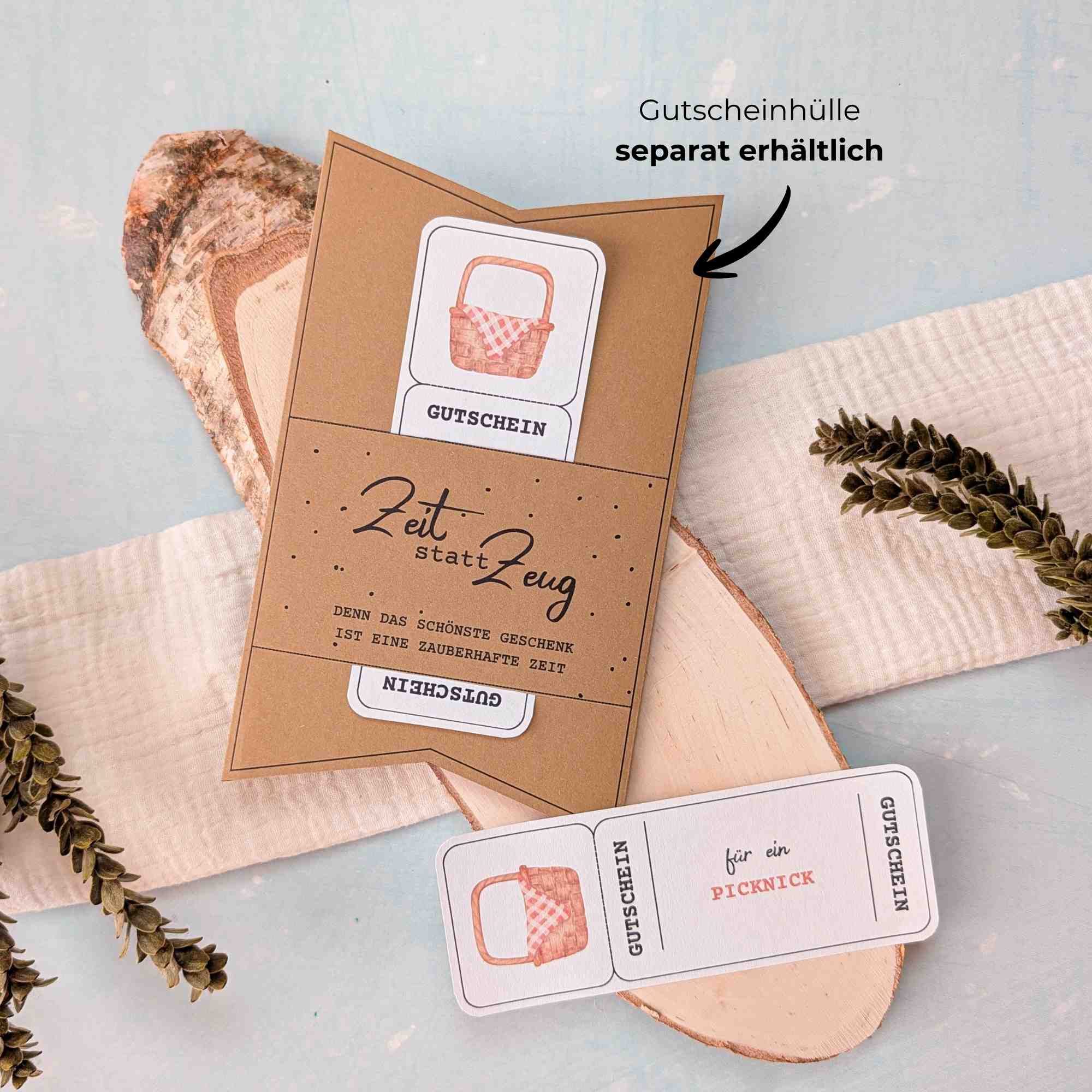 Mit einer meiner liebevoll gestalteten Karten oder Hüllen kannst du deinen Picknickgutschein noch besonderer machen. Die Designs sind perfekt auf die Gutscheine abgestimmt und sorgen dafür, dass dein Geschenk nicht nur inhaltlich, sondern auch optisch richtig was hermacht.