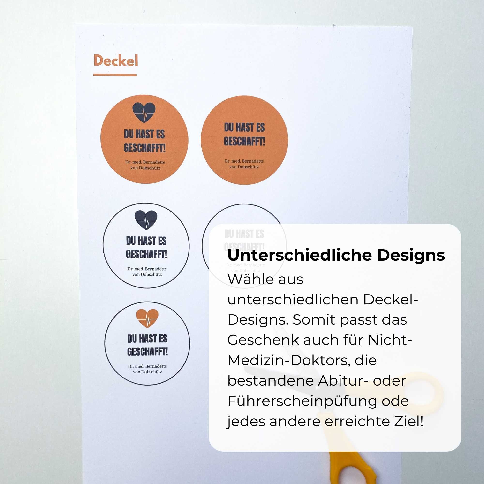 Personalisierbarer Deckel für das Glas: Name und Titel können vor dem Drucken eingetragen werden