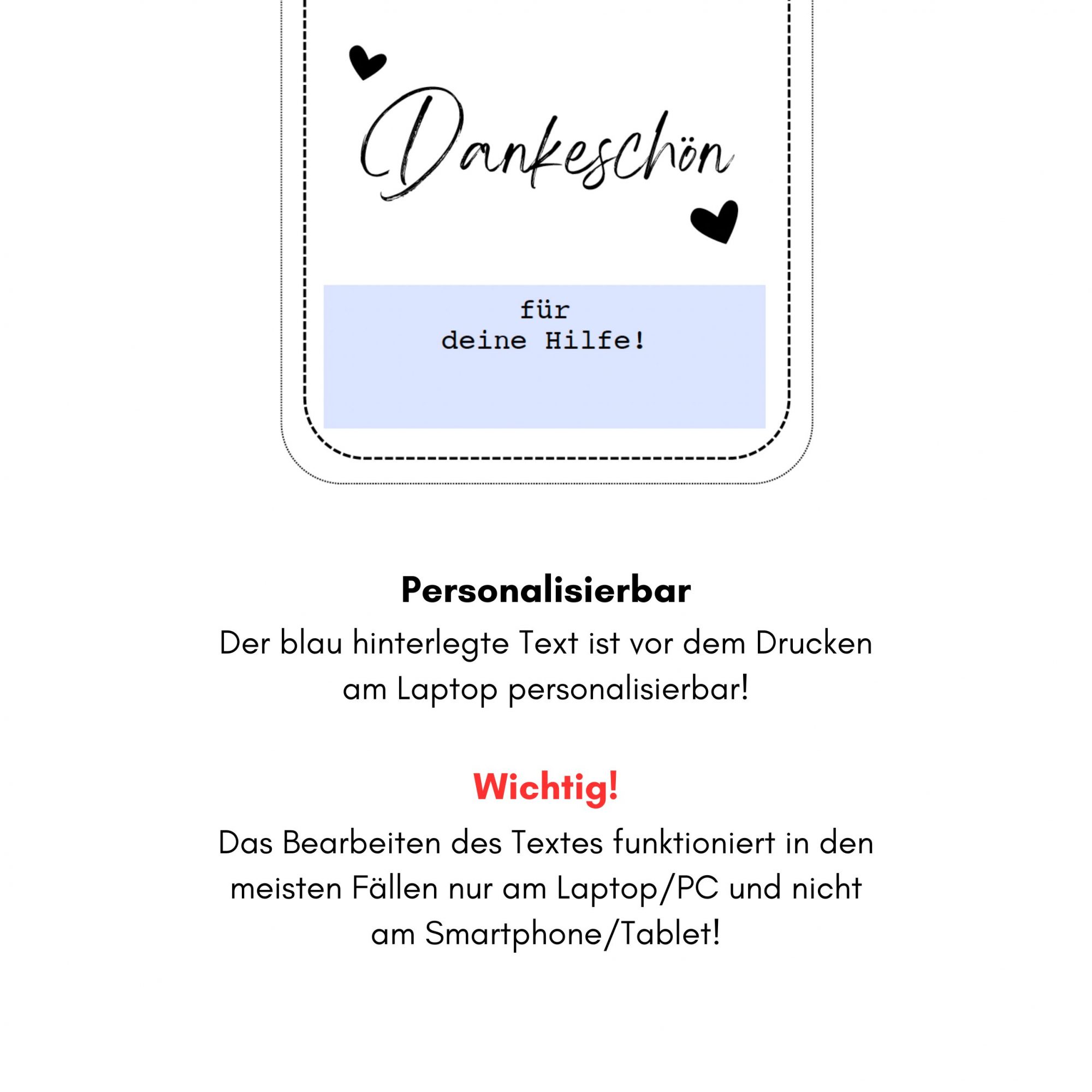 Den unteren Text auf der Karte kannst du vor dem Drucken individualisieren, somit kannst du die Dankes-Karte für die unterschiedlichsten Anlässe verwenden.